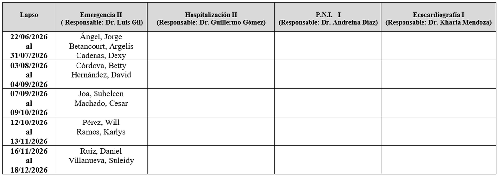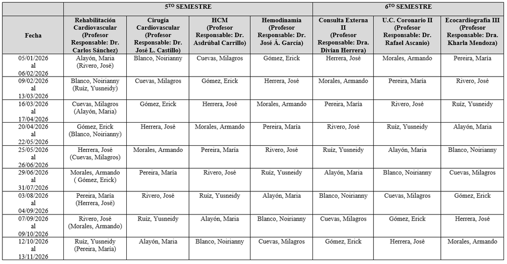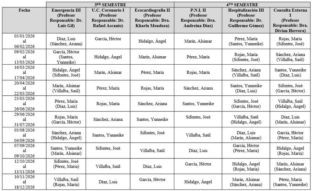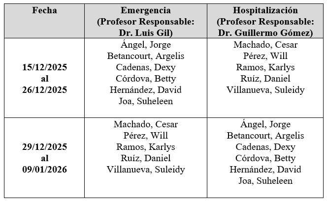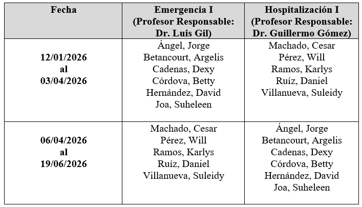 ROTACIONES DE PASANTÍAS SEGUNDO AÑO 2026